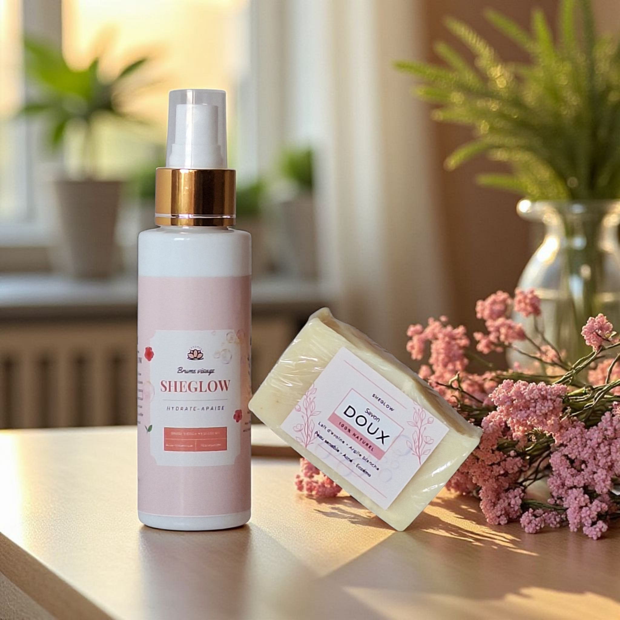 Découvrez le combo idéal pour une peau apaisée, lumineuse et parfaitement hydratée. Le pack SheGlow réunit deux essentiels complémentaires : un savon doux au lait d’avoine et à l’argile blanche, et une brume hydratante à la Niacinamide et à l’Acide Hyaluronique.